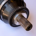 These spacers are designed to make XC90 CV axles compatible with other Volvo P2 platforms without tripping an ABS fault, a highly recommended upgrade to prevent premature CV failure in lifted XC70s. Simply slip over the outboard splined shaft prior to installation.